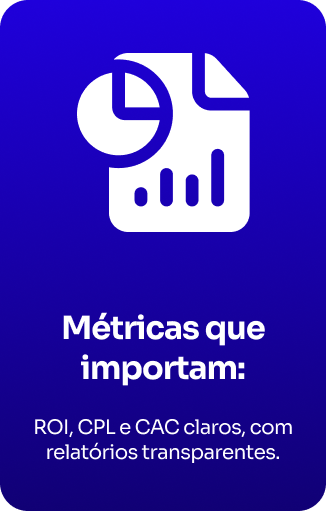 Nós seguimos outro caminho: decisões guiadas por dados, testes e otimização contínua. Marketing de performance não vende cliques — gera receita.